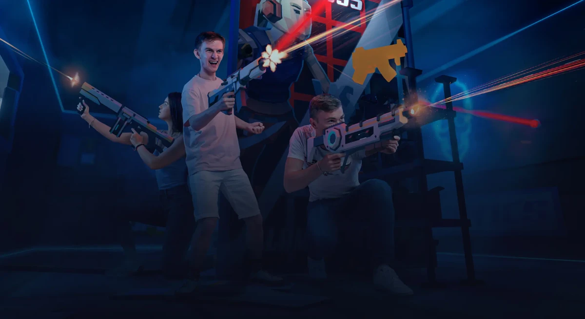 Играйте команда на команду в виртуальной реальности на арене 180 м2