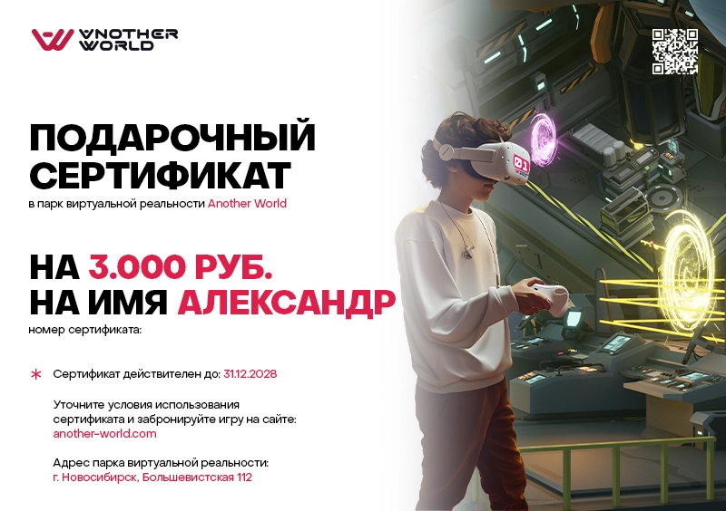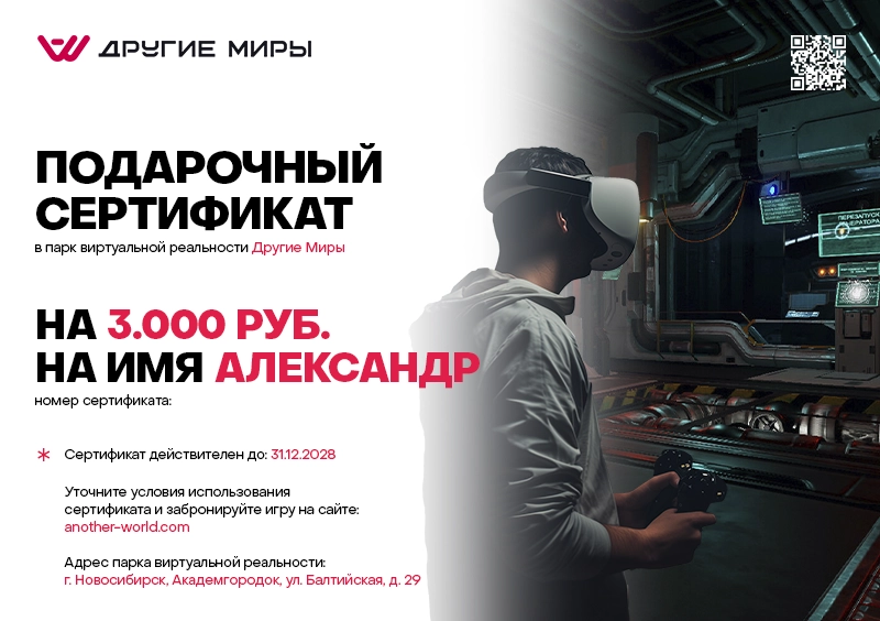 Сертификат можно получить самовывозом на нашей VR-арене.
